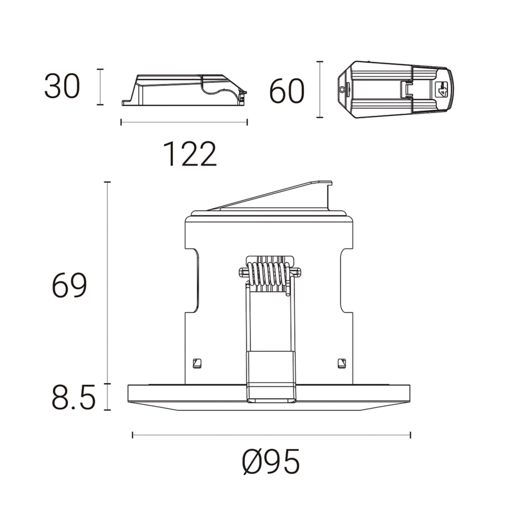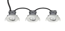 Dimmable, fire-rated downlights. Feature integral driver with push-fit, loop-out terminals for ease and speed of installation. Fully tested for 30, 60 and 90-minute ceiling types. Integral switch offers selection of colour temperature in 3000, 4000 or 6000K.