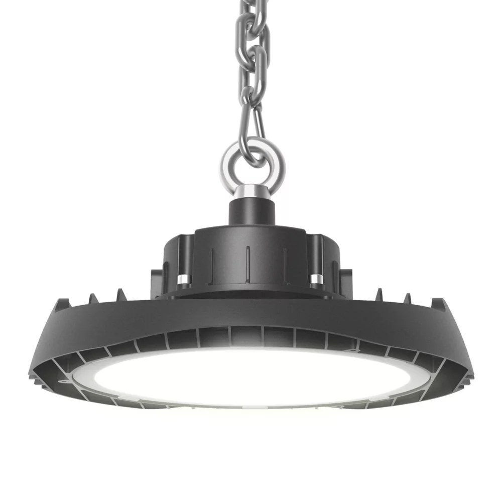 Robust and low-profile with die-cast, powder-coated body. Heat sink offers excellent thermal performance. Pre-wired with 1m of H05RN-F cable for ease and speed of installation. Suitable for drop rod, jack chain and catenary wire fixings. Ingress protection rating of IP65 offers range of installations, including factories and warehouses.
