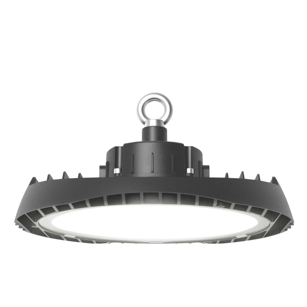 Robust and low-profile with die-cast, powder-coated body. Heat sink offers excellent thermal performance. Pre-wired with 1m of H05RN-F cable for ease and speed of installation. Suitable for drop rod, jack chain and catenary wire fixings. Ingress protection rating of IP65 offers range of installations, including factories and warehouses.