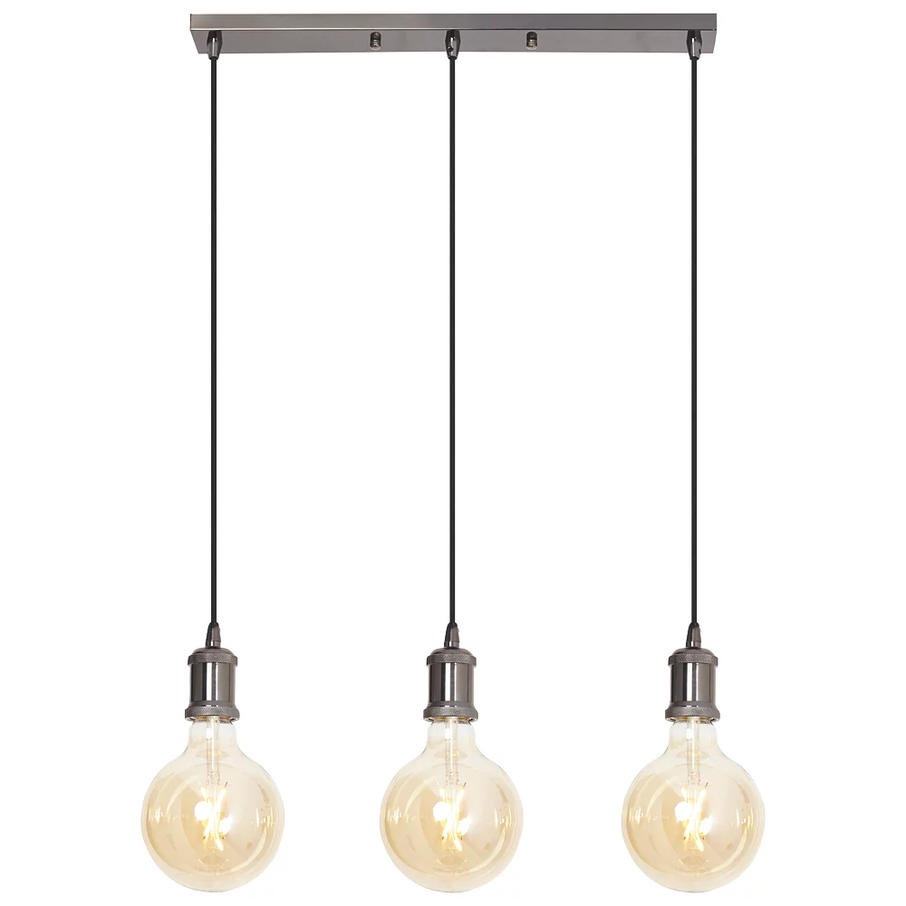 Decorative 3-way bar pendant with 3 x WiFi Smart LED Globe Lamps. Enables user to choose different shades of whites. Dimmable via the WiZ app. Added functionality includes setting schedules, providing added home security and night lights.