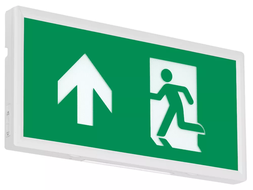 LED slim emergency exit box with 3 hours emergency back-up duration. Can be maintained or non-maintained.