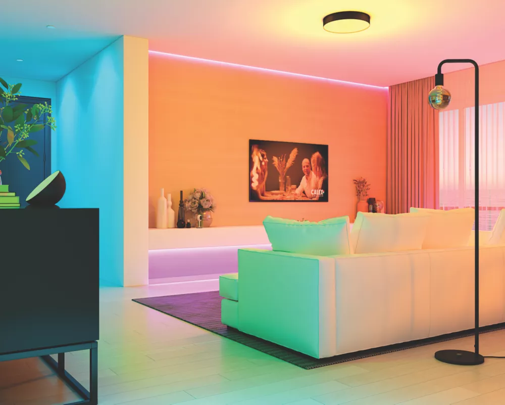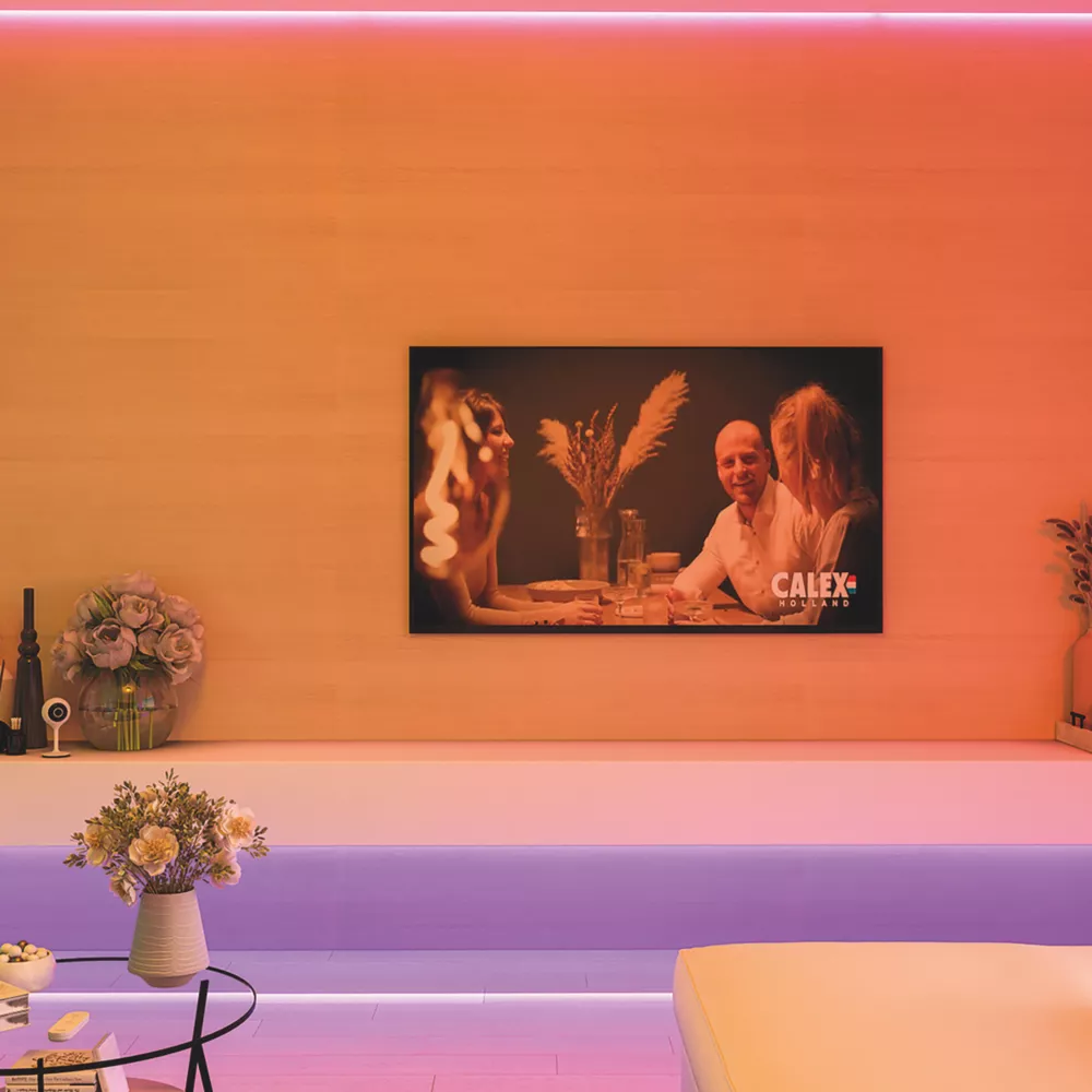 Illuminates any room or surface in bright work light, dimmed cosy light or RGB colour light. Set the mood with voice control or via the Calex app.