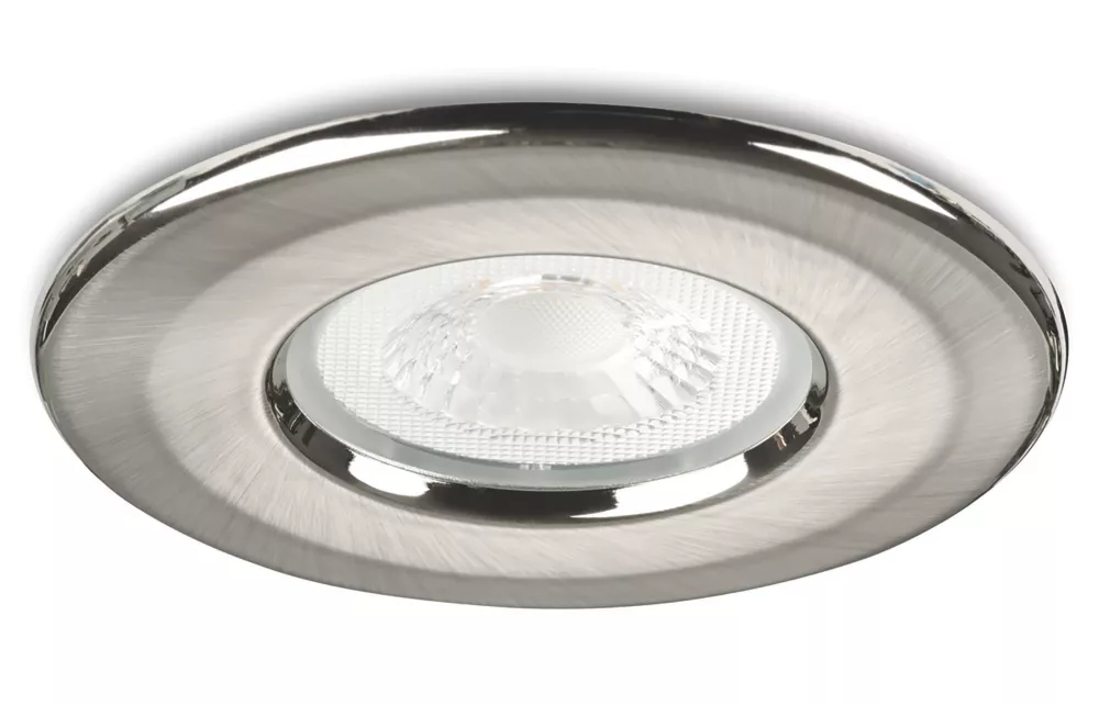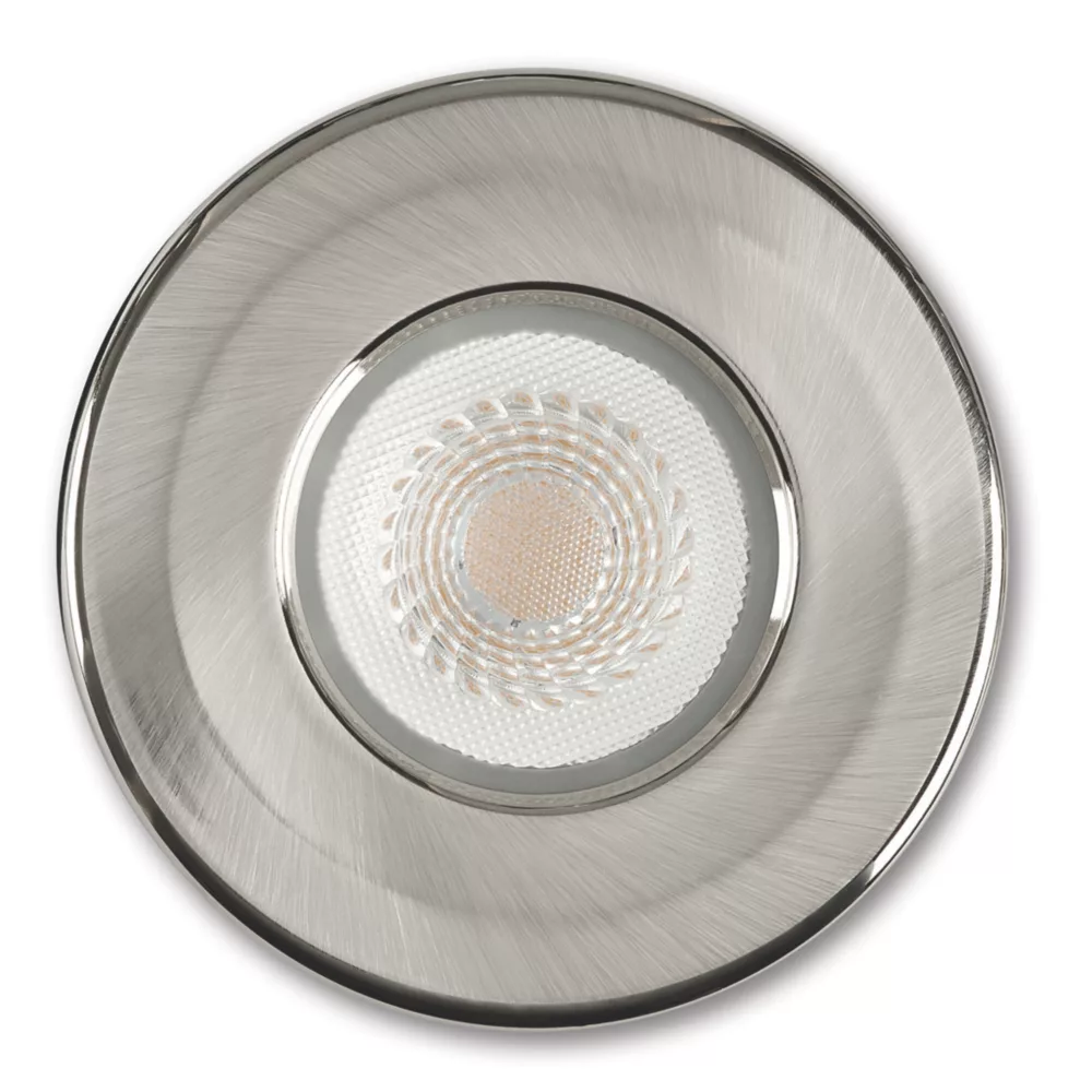 Integrated fire rated downlight. Fully dimmable with a removable brushed steel bezel.