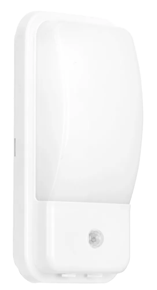 Compact and tough security bulkhead with lux detecting PIR sensor. Adjustable light detector with adjustable hold time. Constructed from impact-resistant polycarbonate.