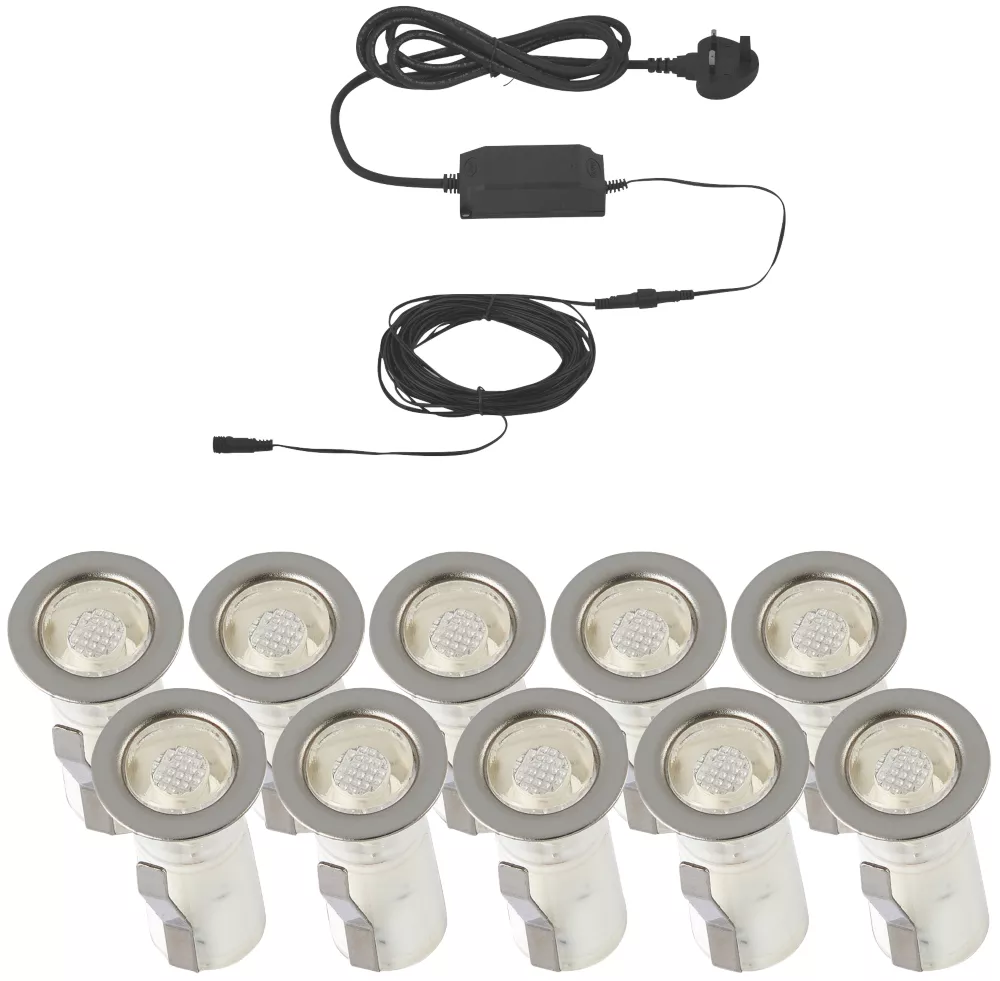 Stainless steel and polycarbonate. Contemporary design. Ideal for decking areas, walkways and other outdoor areas.