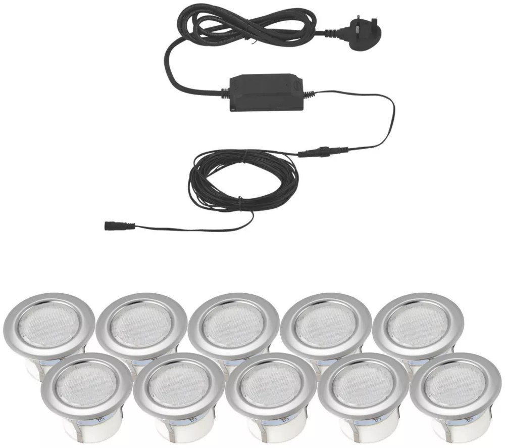 LAP Coldstrip 30mm Outdoor LED Recessed Deck Light Kit Brushed Chrome 4.4W 10 X 19.5lm 10 Pack