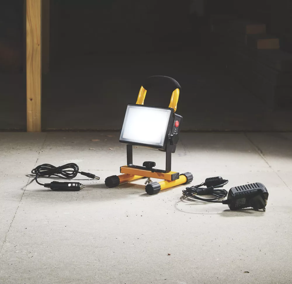 Features 2 lighting settings, LED power charge indicator and wide handle for easy carrying.