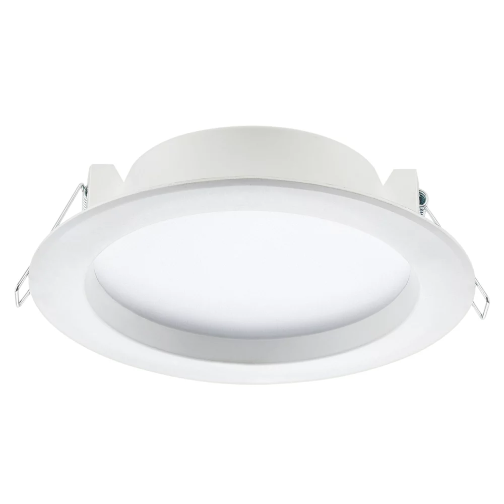 Commercial LED downlight with opal diffuser and white polycarbonate body. With a recessed mount suitable for plasterboard or suspended ceiling systems. Comes complete with loop-in loop-out driver to lower installation time and costs. Gives offices, corridors, and commercial spaces bright and crisp lighting. Also suitable for bathrooms.