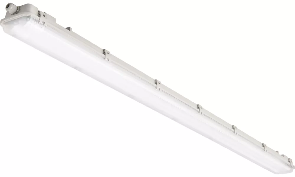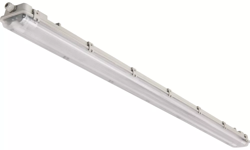Polycarbonate construction. Weatherproof, LED tube batten fitting. Ideal for fluorescent replacement. Suitable for industrial environments. Supplied with PC clips and surface mounting brackets.