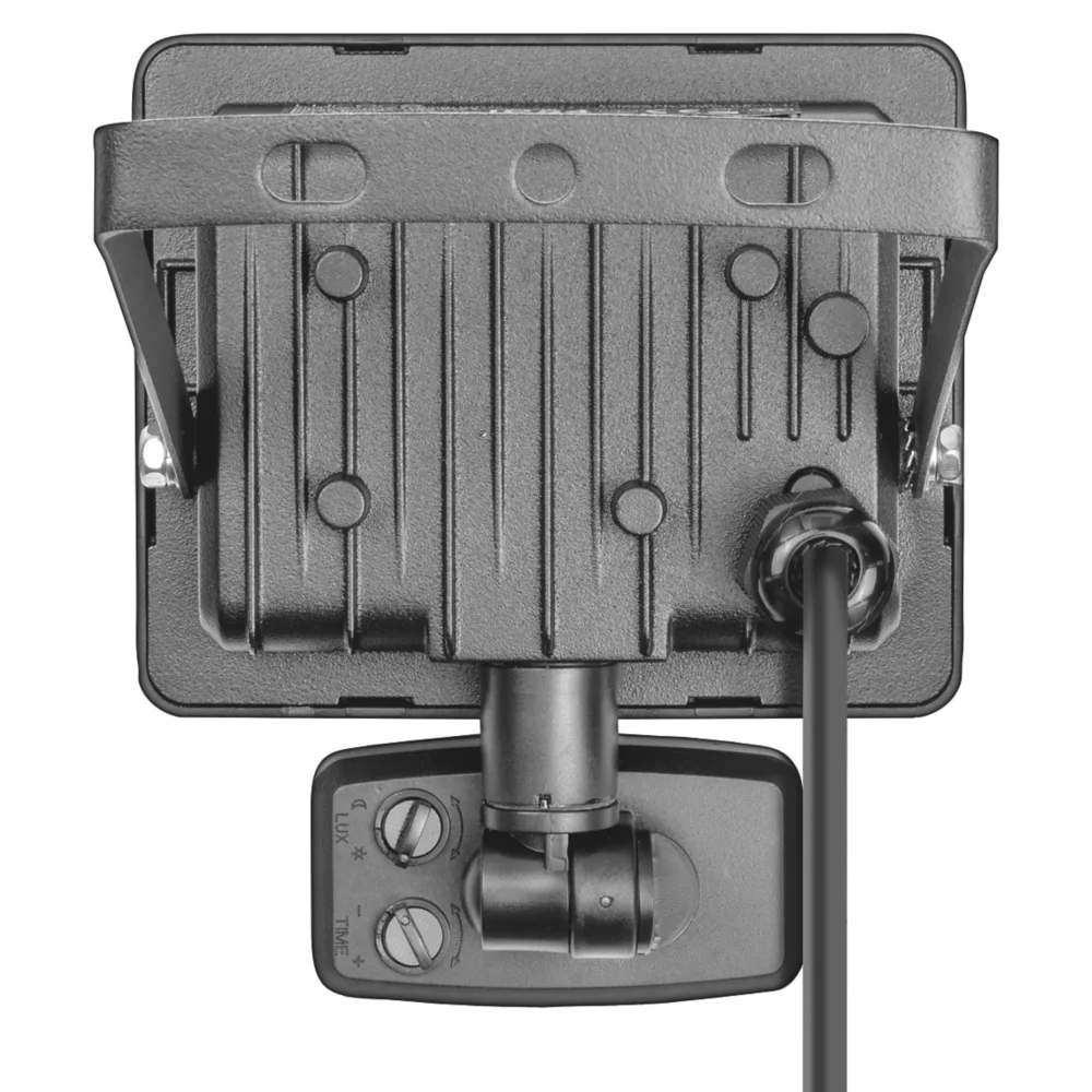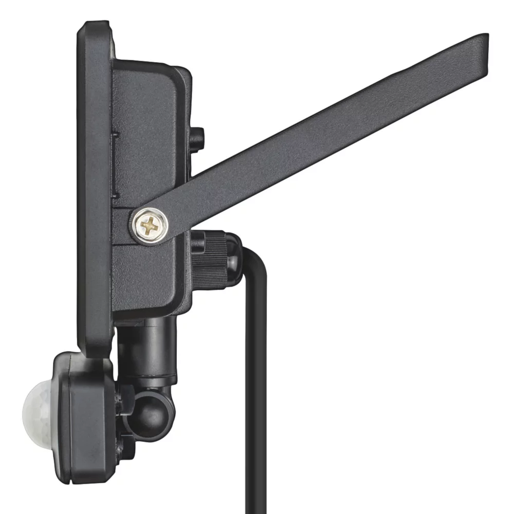 Energy-efficient slimline LED floodlight with PIR motion sensor, detecting movements from distances of up to 10m with 120° range. IP65 dust and weatherproof rating. Suitable for home or workplace exteriors. Saves up to 90% energy compared to traditional halogen floodlights. Fit and tilt bracket offers easy installation. Robust design reduces the need for maintenance.