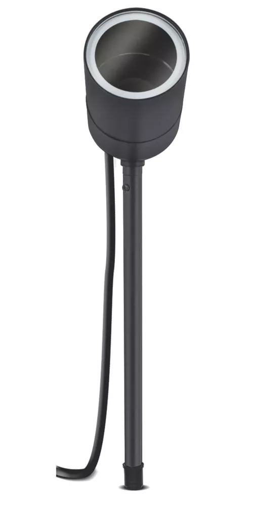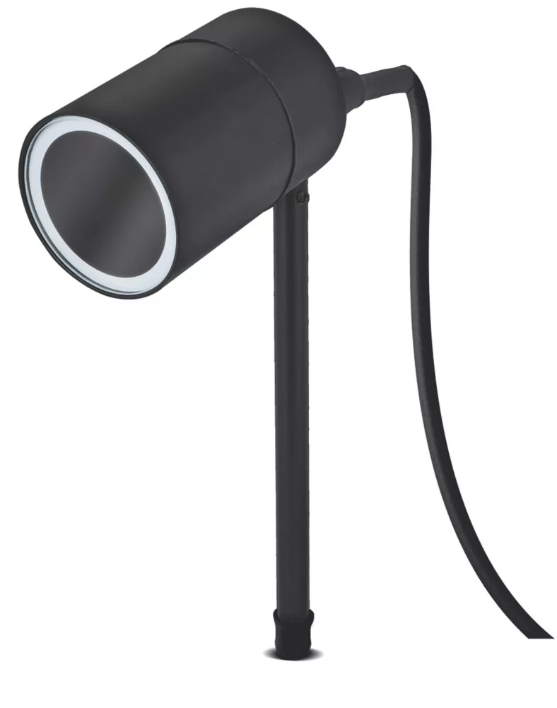 Decorative outdoor ground spike light with an adjustable tilt head. Stainless steel body with a tempered glass lens. Supplied with 1.95m cable