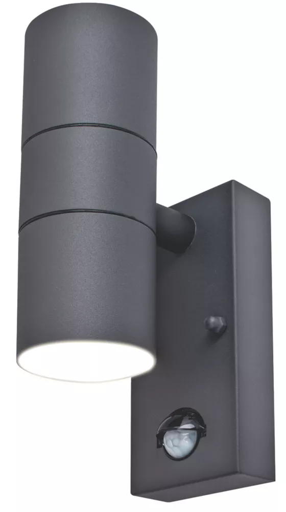 Stainless steel body with tempered glass diffuser. Includes integrated PIR.