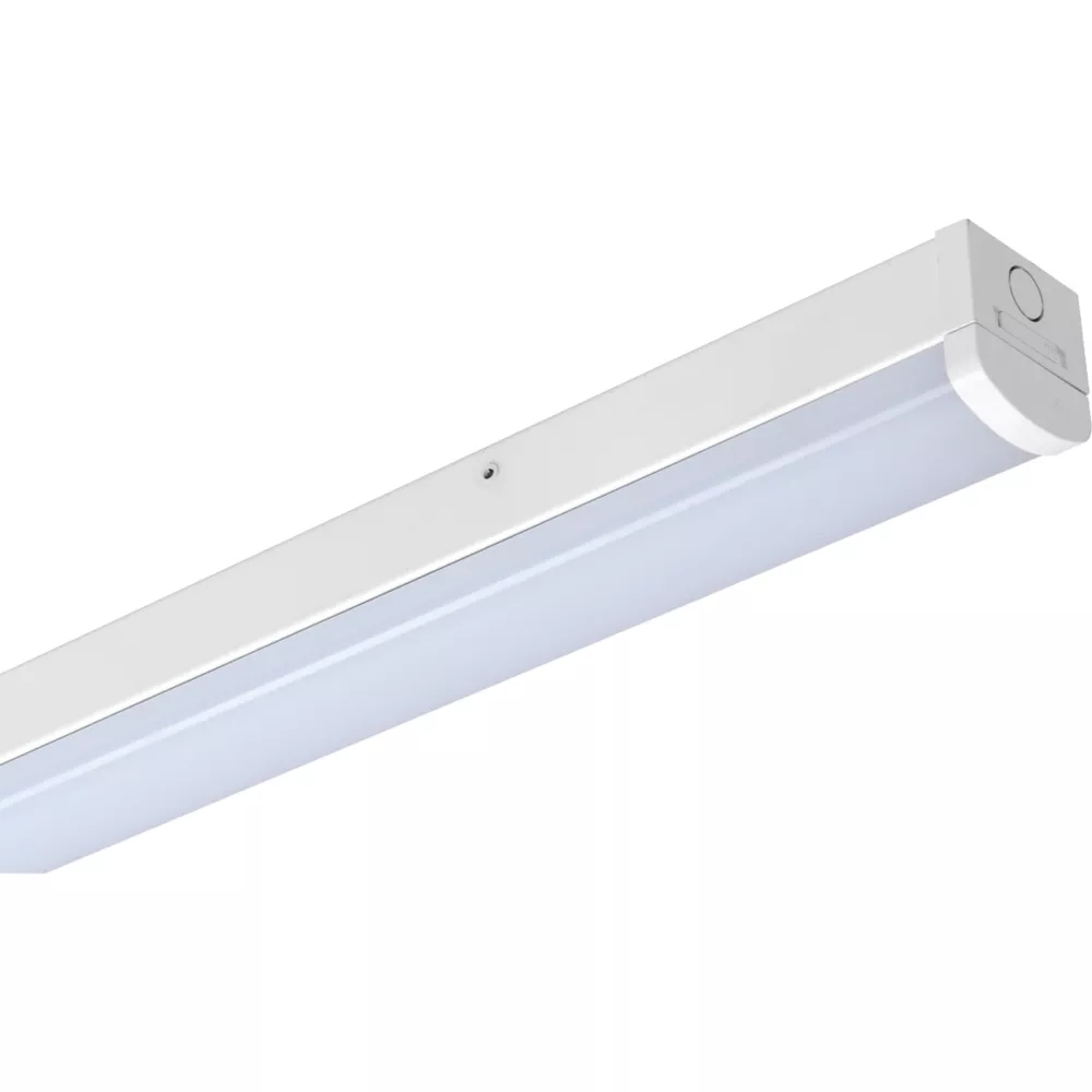 Robust steel body with large polycarbonate opal diffuser. Ideal bright light solution for warehouses, garages and workshops. Sliding release tabs enable a fast and easy installation of the hinged diffuser.