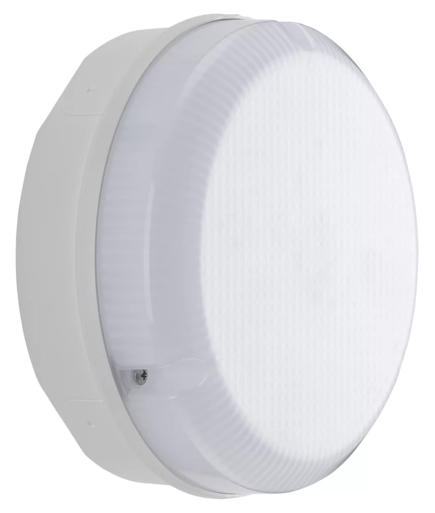 Luceco Eco Indoor & Outdoor Round LED Bulkhead With PIR Sensor Black / White 10W 700lm