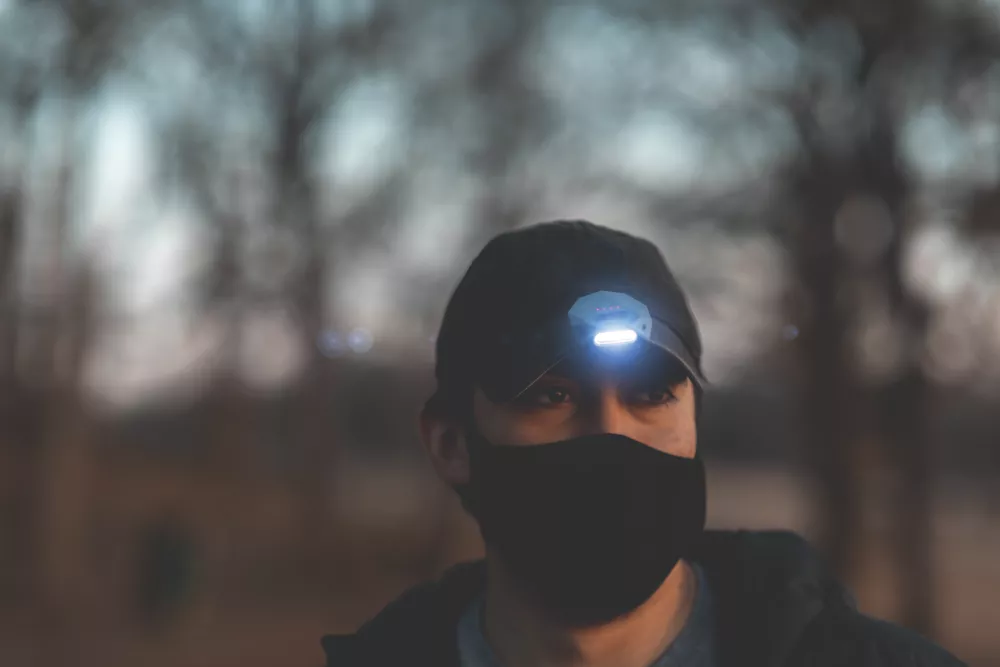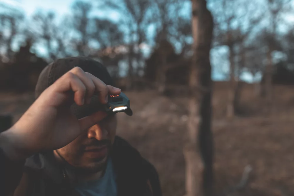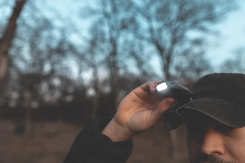 Rechargeable cap light with 3 light modes. A sensor mode enables contactless control of power. Included battery allows for up to 18 hours of operation in between charges.