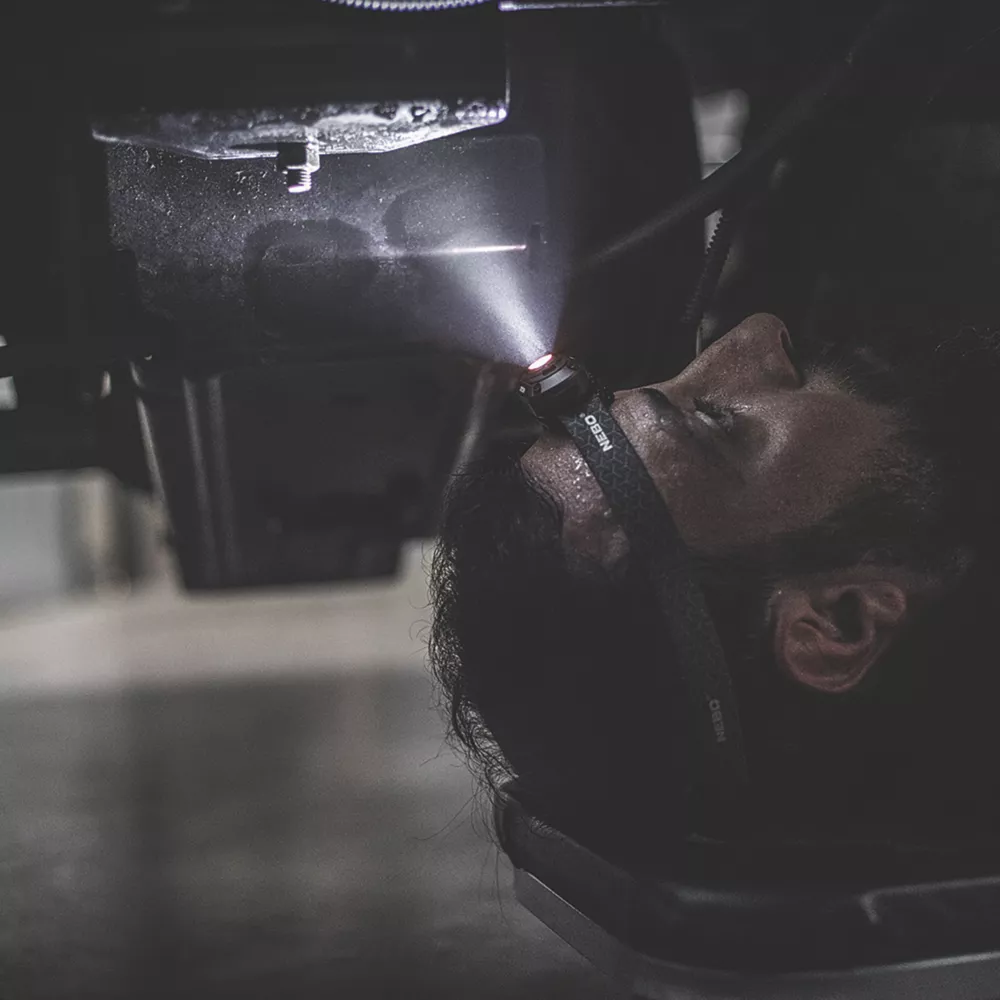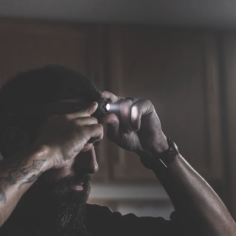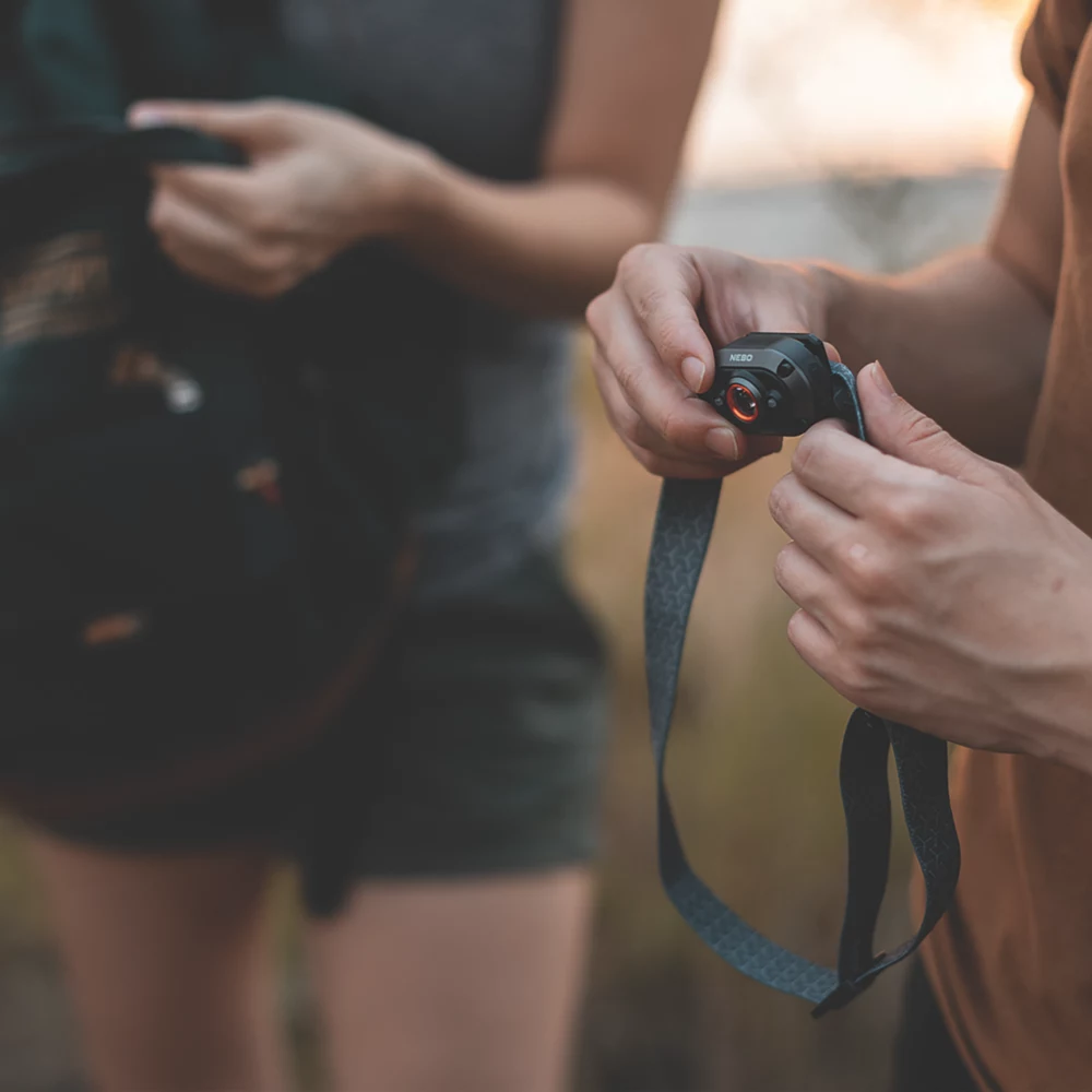 Rechargeable, hands-free, headlamp constructed from anodised aircraft-grade aluminium. Features dual green and red LED chips, with direct-to-red feature for stealth viewing, and detachable head strap mount with adjustable integrated tilt, for exact positioning of the beam. Also features battery charging indicator.