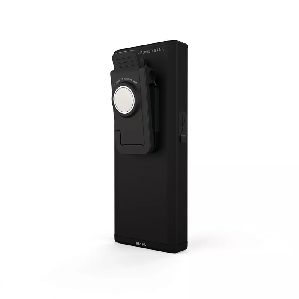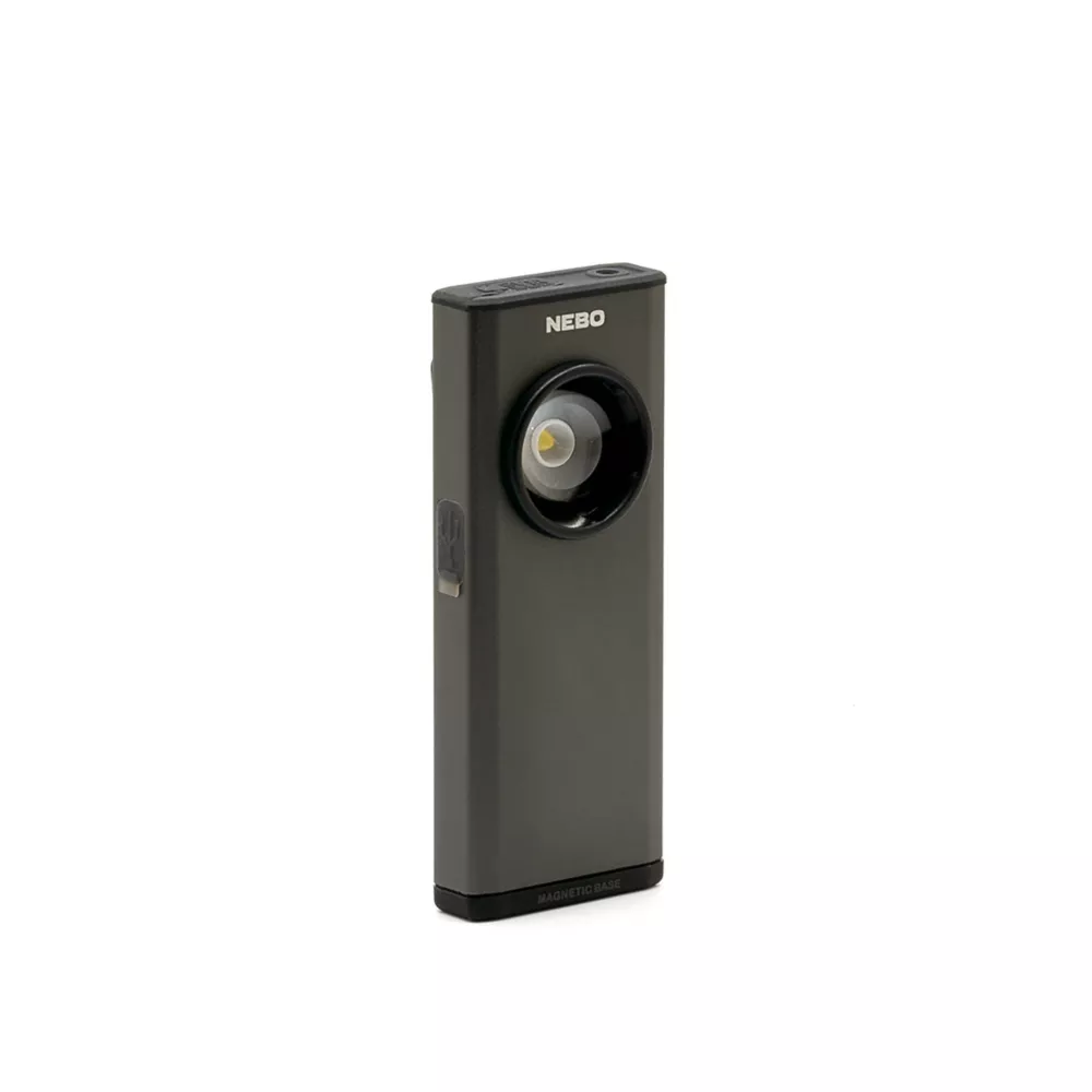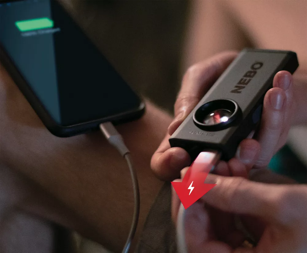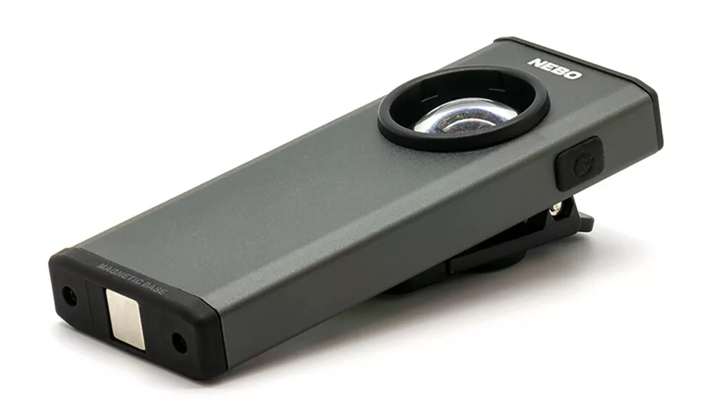 Rechargeable pocket light with thin, ergonomic design. Features detachable magnetic pocket clip, collapsible hanging hook and magnetic base for convenient hands-free lighting. Can be used as a power bank for USB-powered devices. Full dimming capability, red laser pointer and Power Memory Recall.
