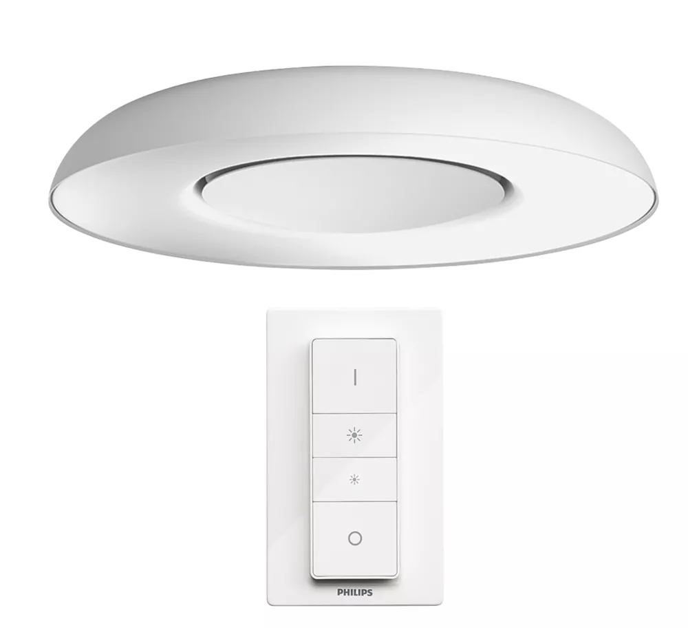 Offers thousands of shades of warm-to-cool white light for any time of day. Features instant control with Hue dimmer switch included, or Bluetooth. Pair with a wireless dimmer switch for easy wireless control. Further smart lighting features available with a Hue Bridge (sold separately).