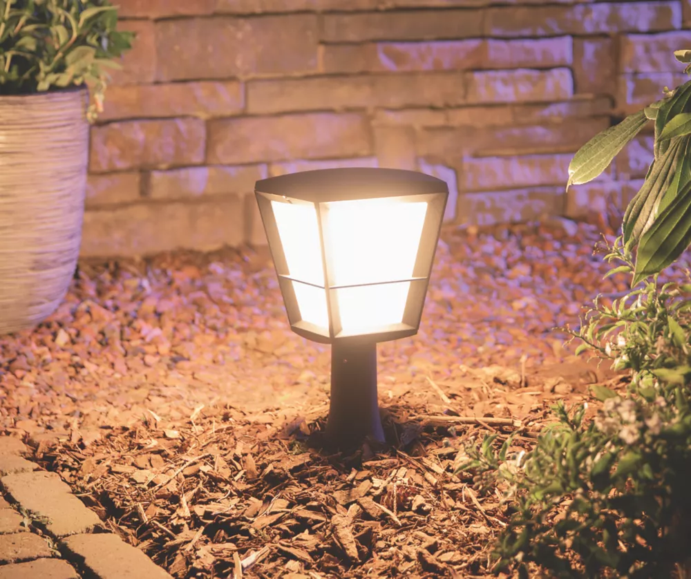 Outdoor pedestal light that can be connected to existing Hue bridge to enjoy benefits such as away-from-home control and scheduling (Hue bridge sold separately). Create an ambience with a choice from 16 million colours.