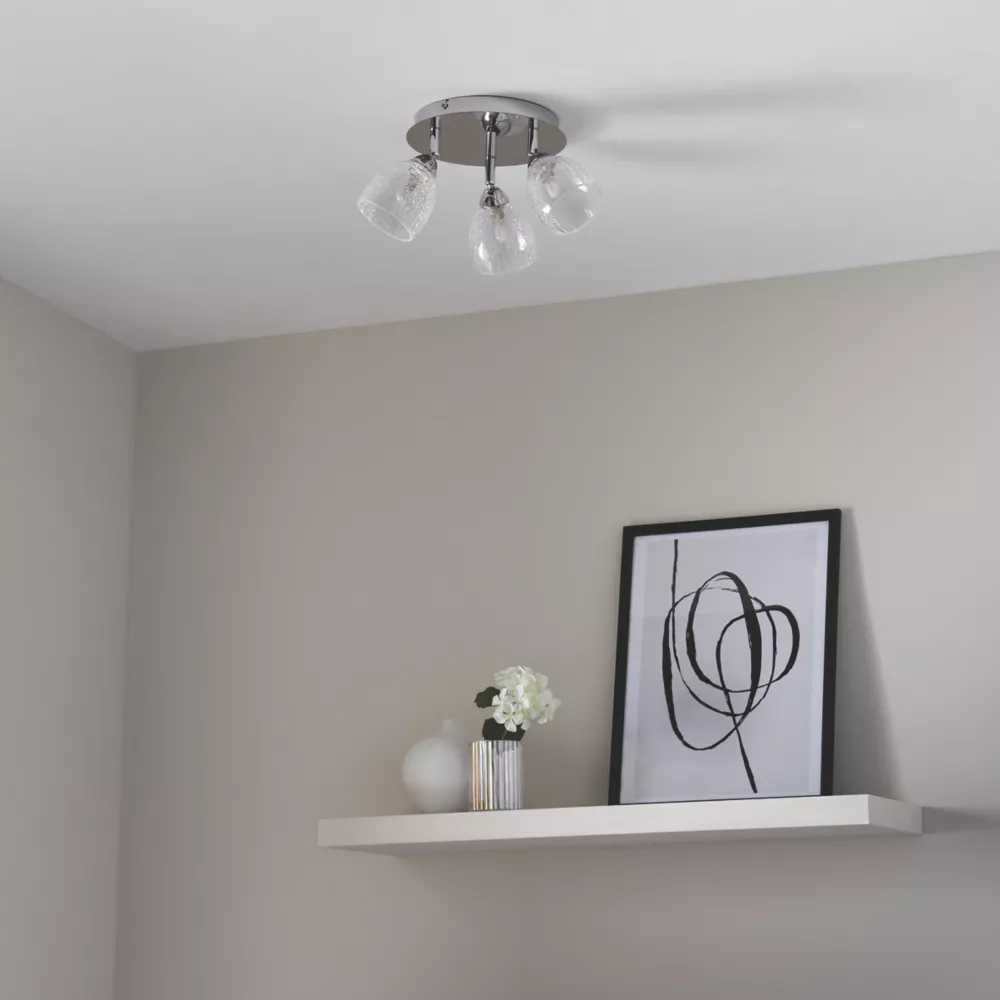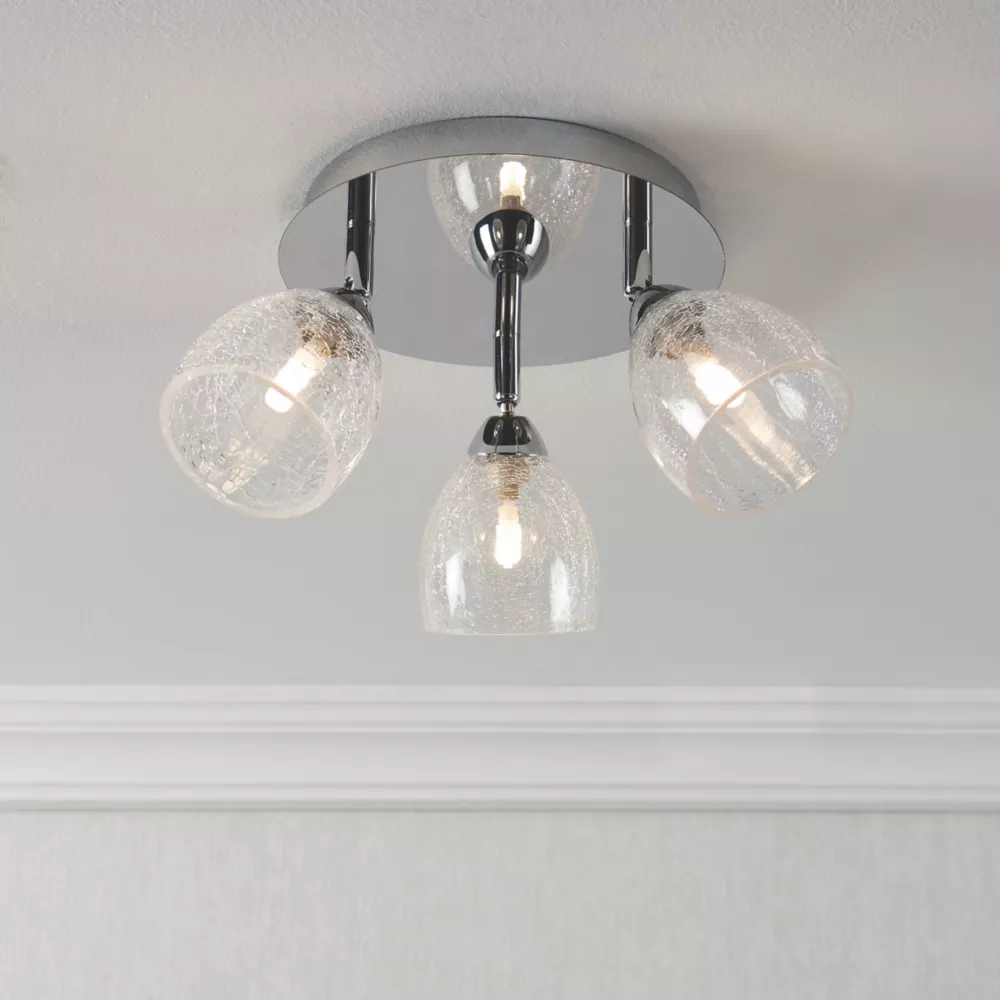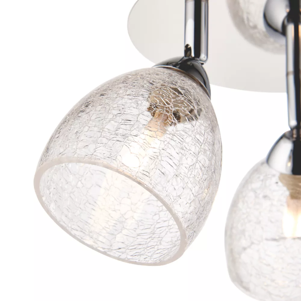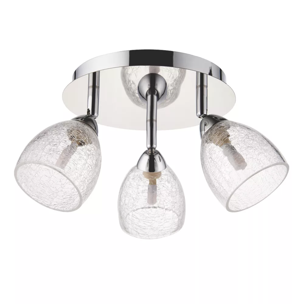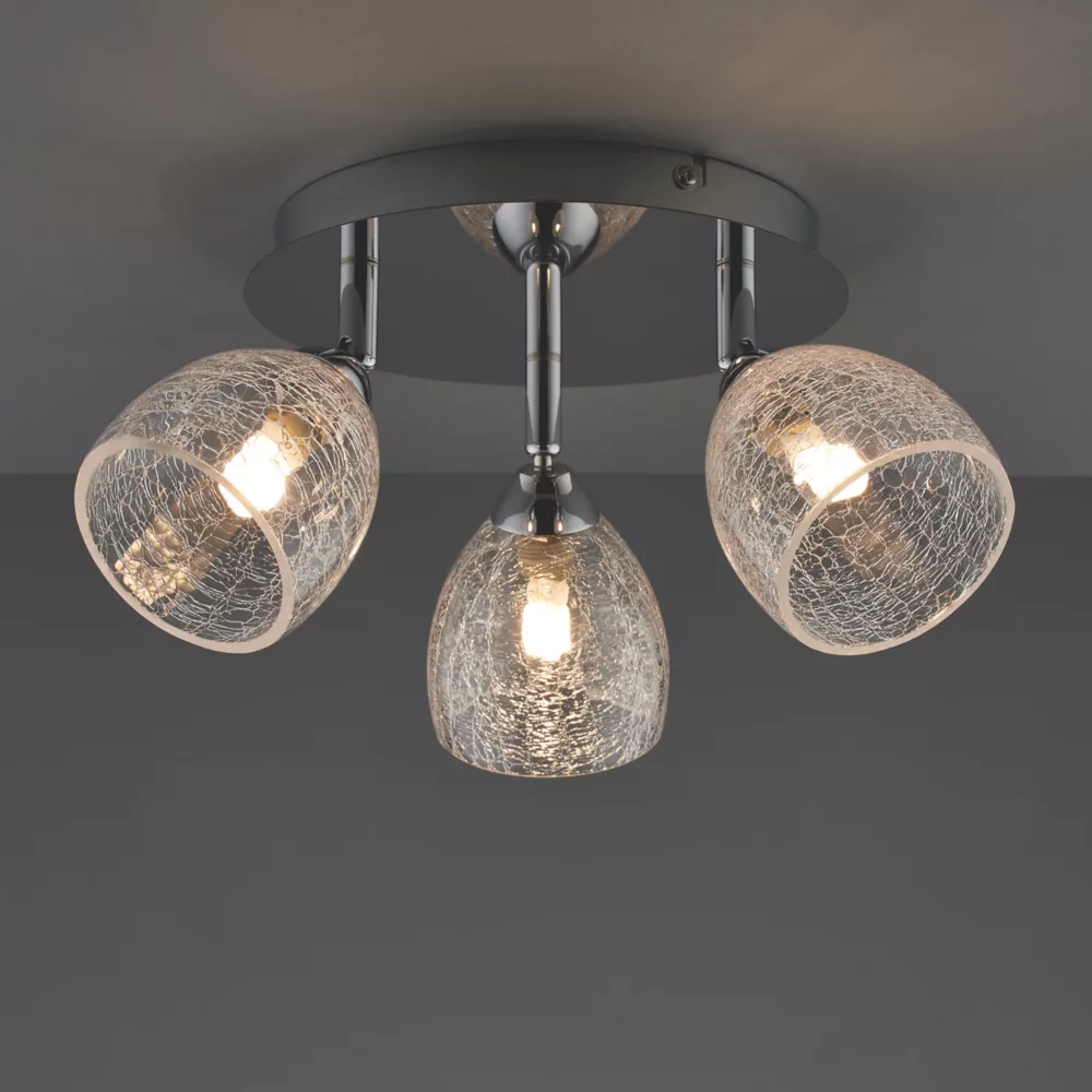Spotlight with chrome effect plating and clear crackle glass. Compatible with LED lamps. Dimmable when fitted with dimmable bulbs. Supplied with 3 x 2.5W warm white G9 LED capsules.