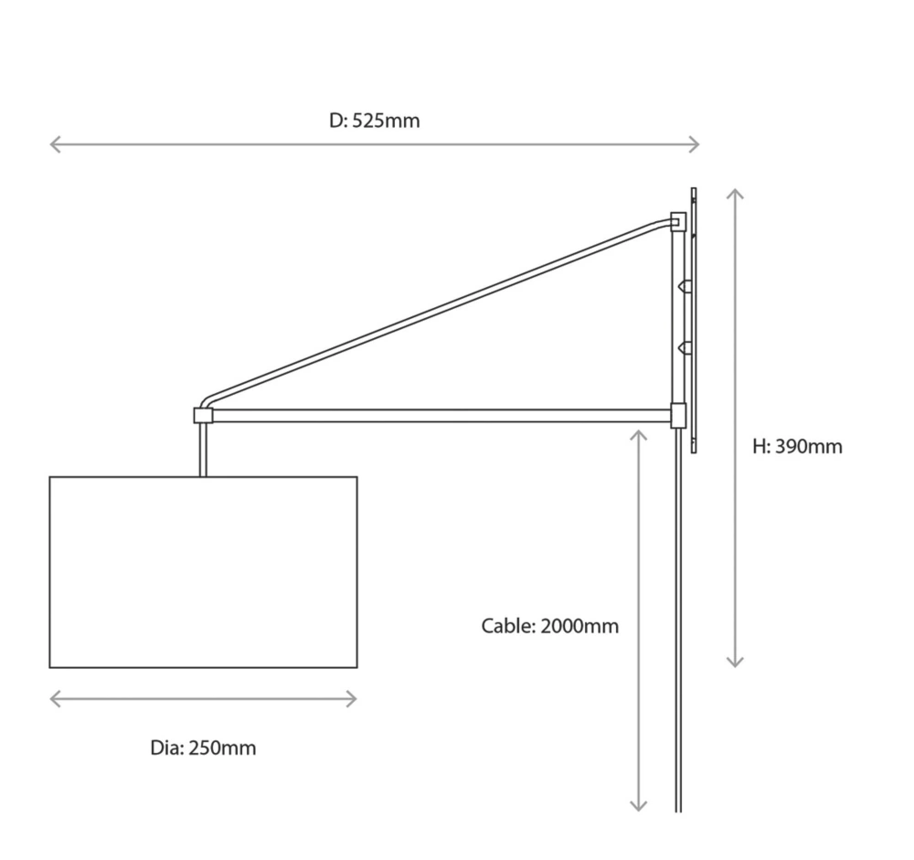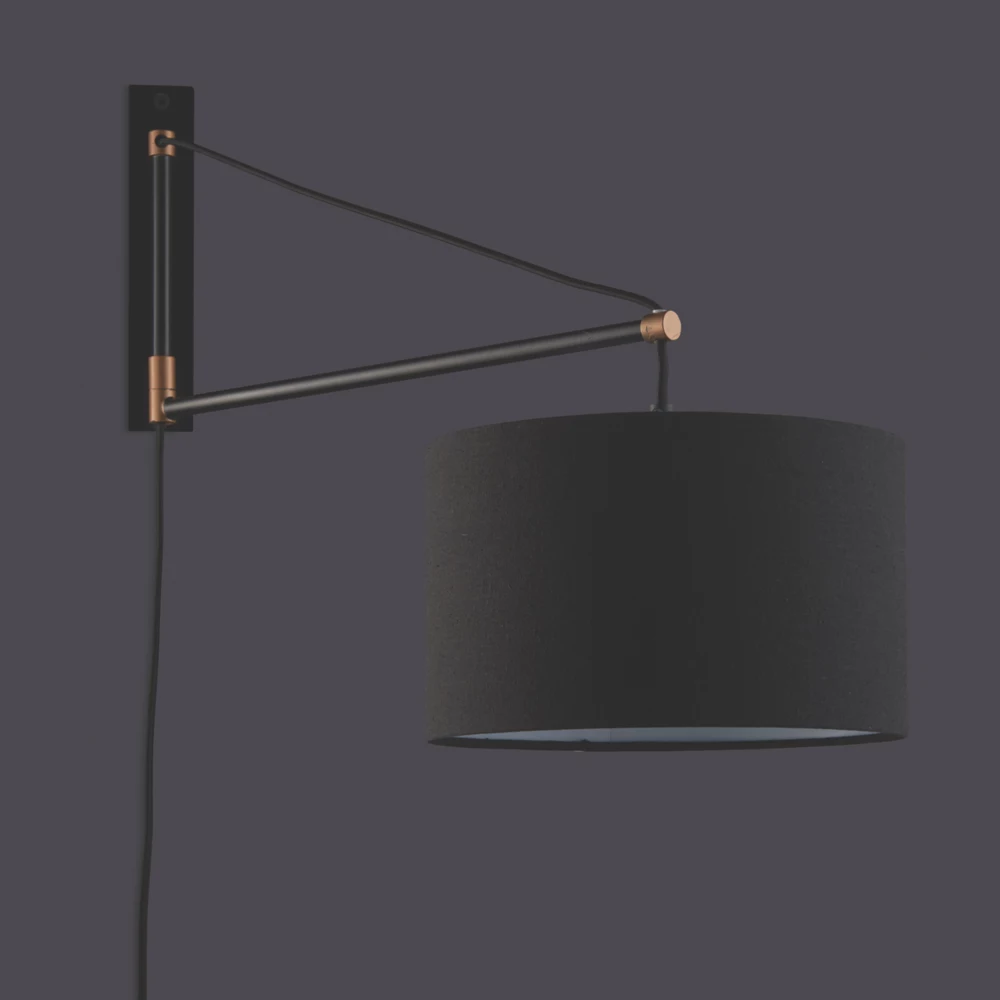 Modern wall light with an adjustable swing arm. Supplied with mains plug and inline switch so no wiring required.
