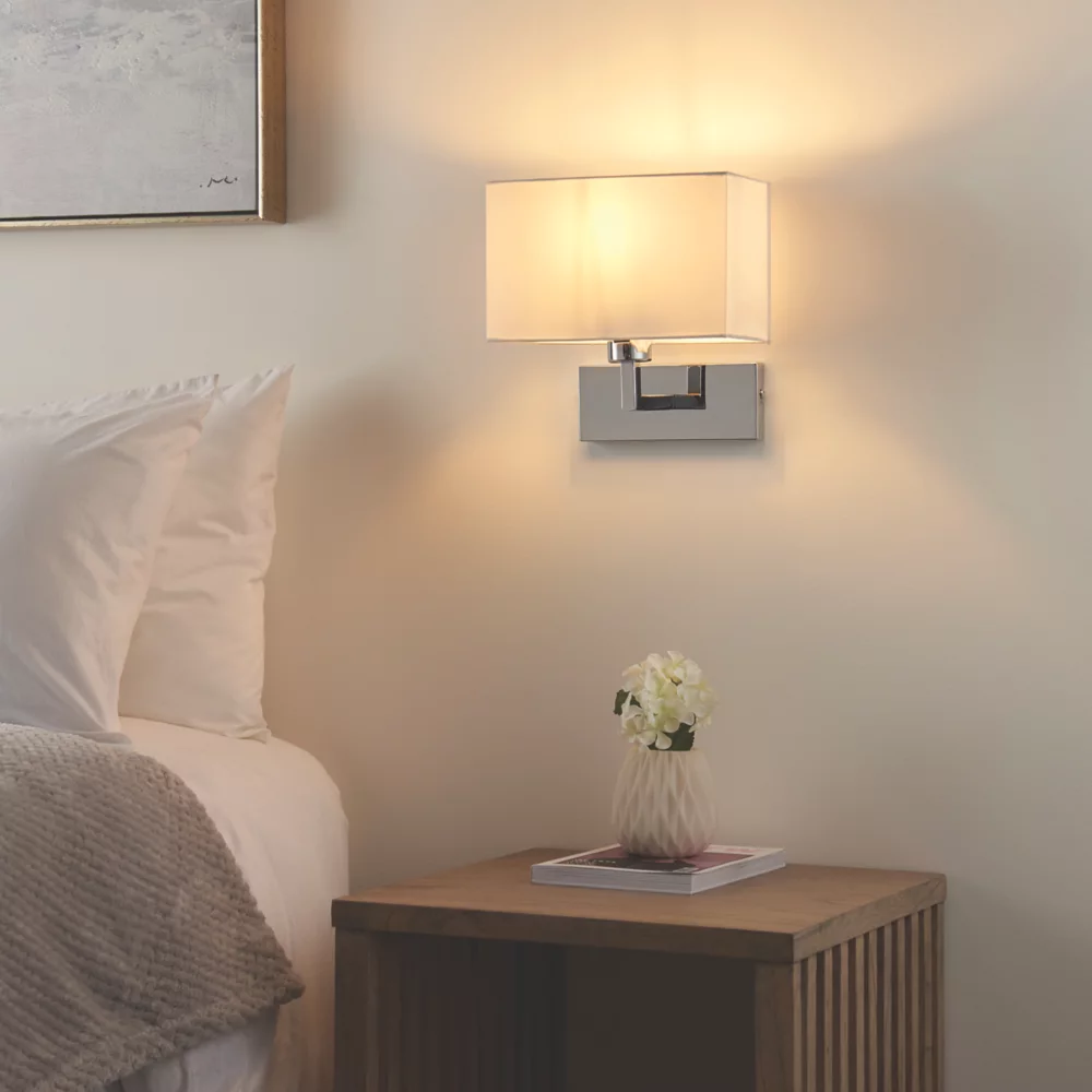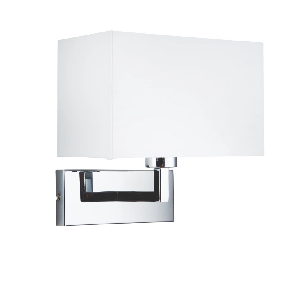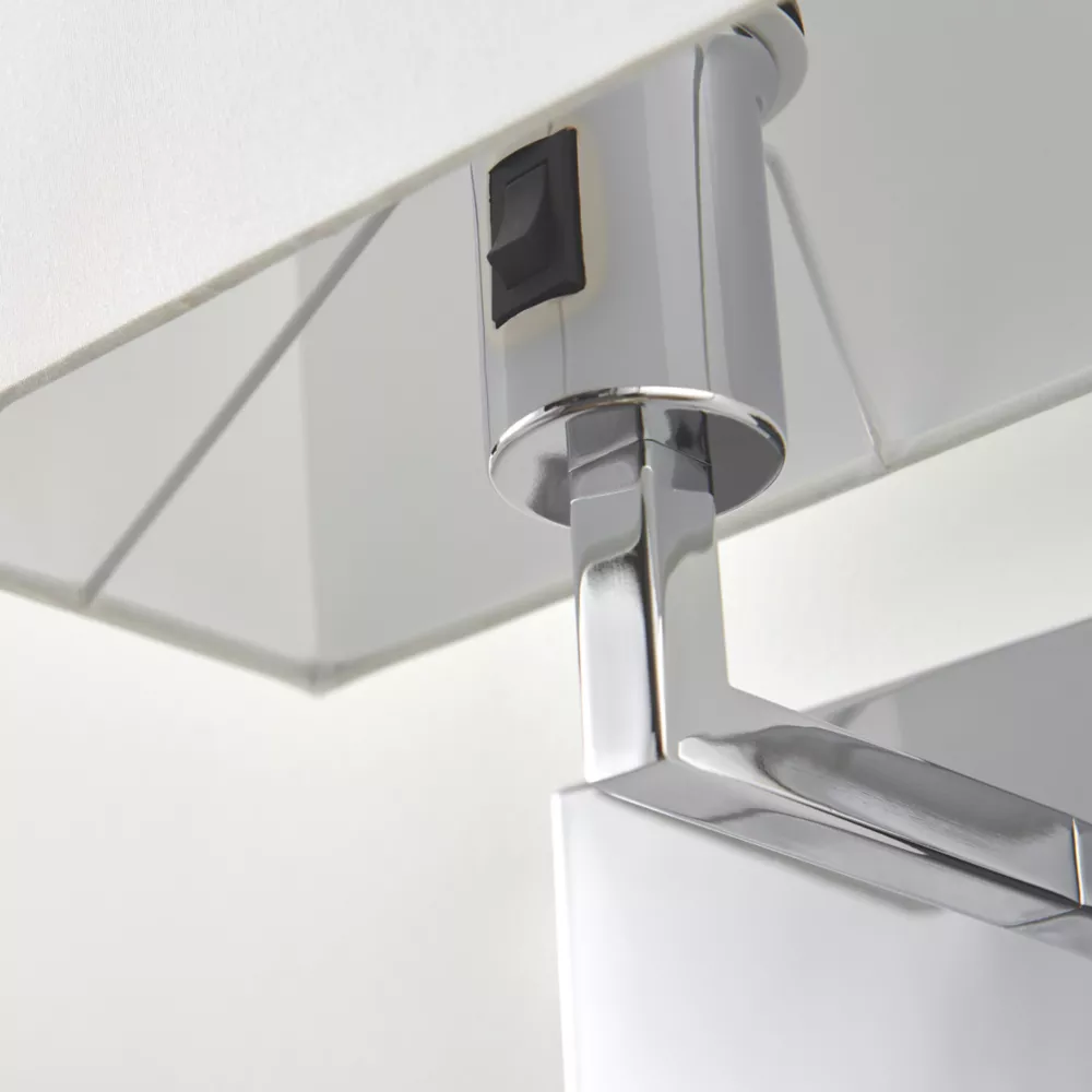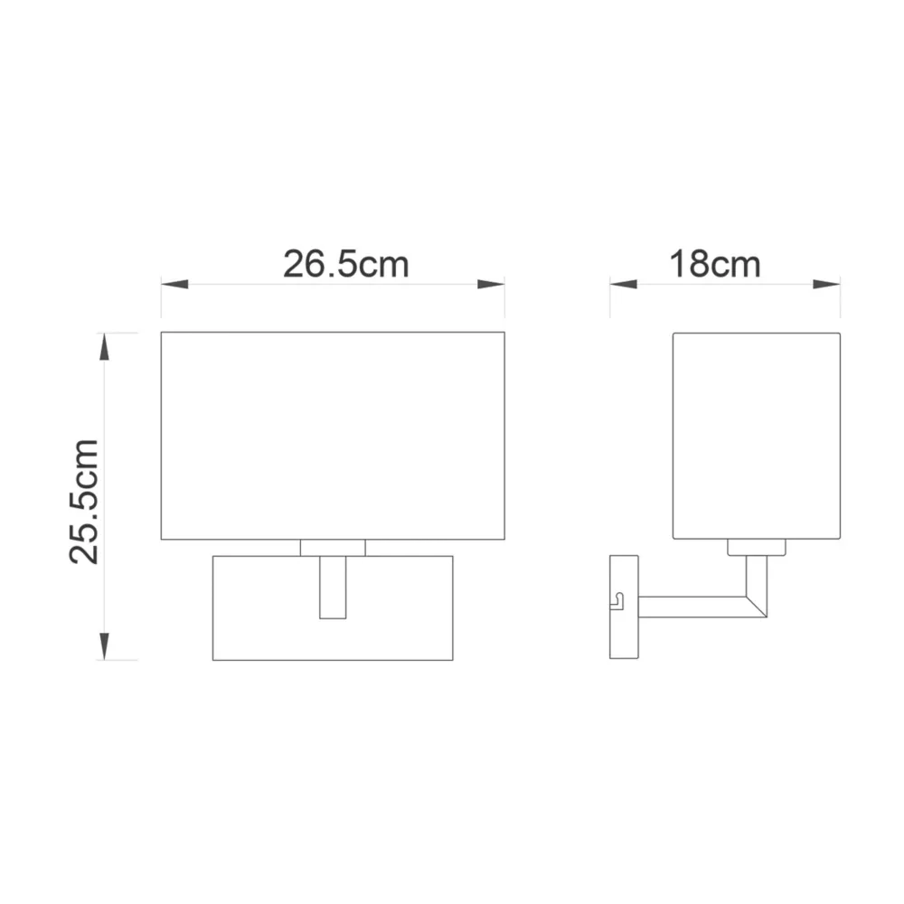 Slimline wall light with a square fabric shade. Complete with a lampholder switch.