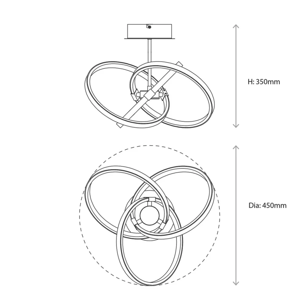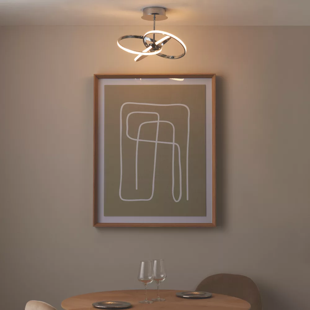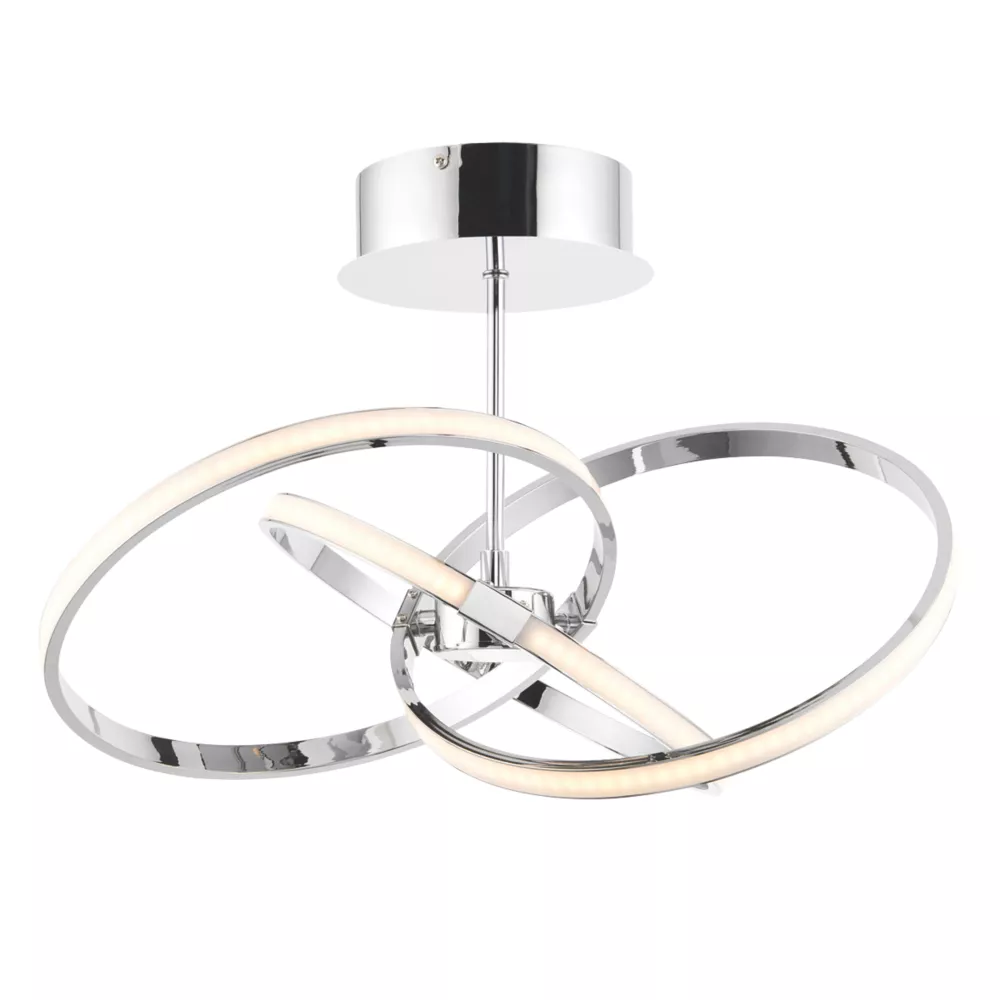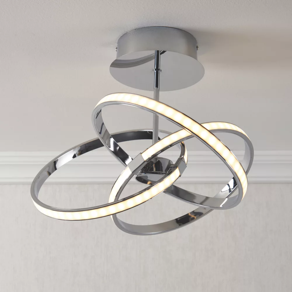 Remi chrome contemporary 3-lamp ceiling light with adjustable rings. Contains Integrated dimmable LED. Ideal for low ceilings.
