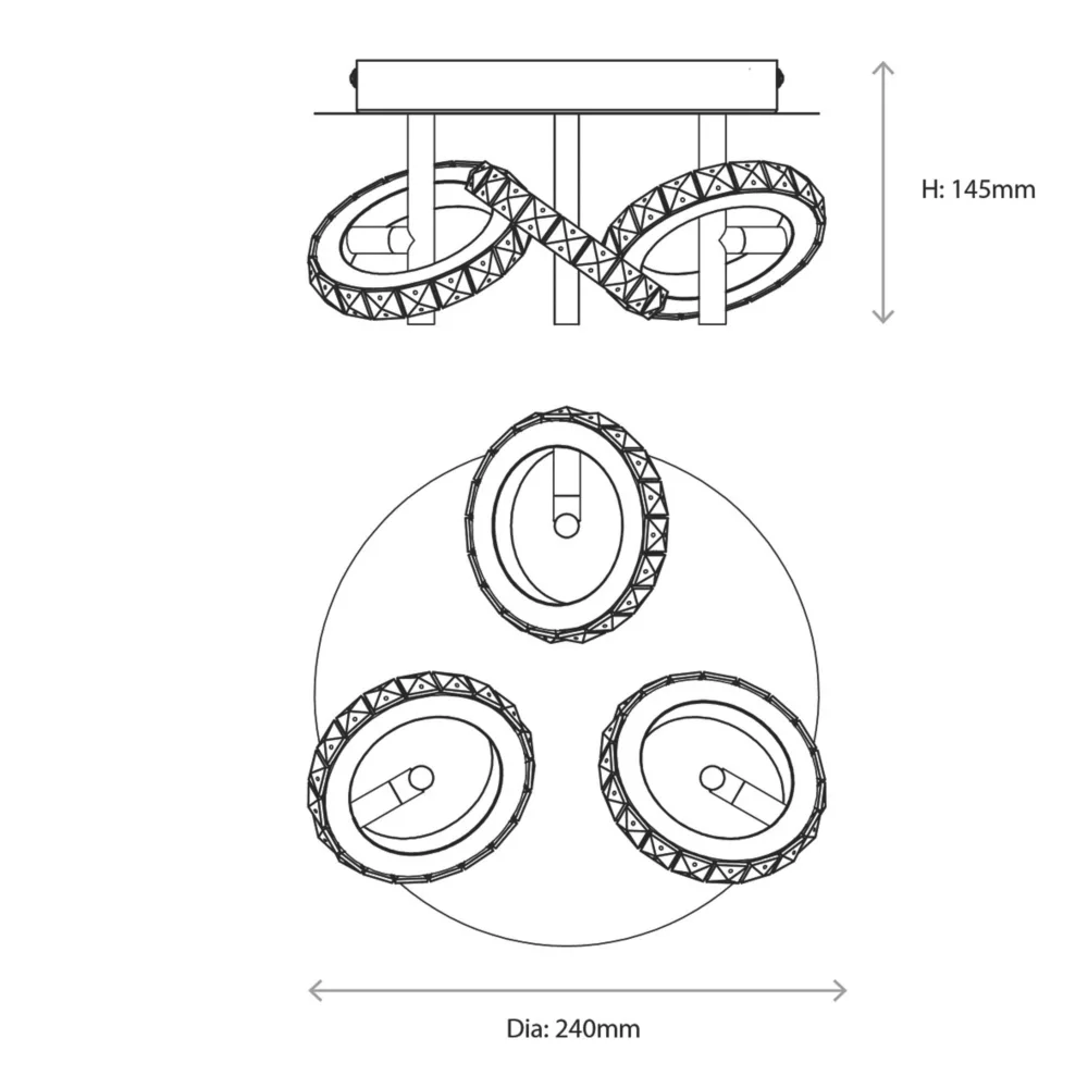 Contemporary 3-lamp spotlight with adjustable rings. Ideal for low ceilings.