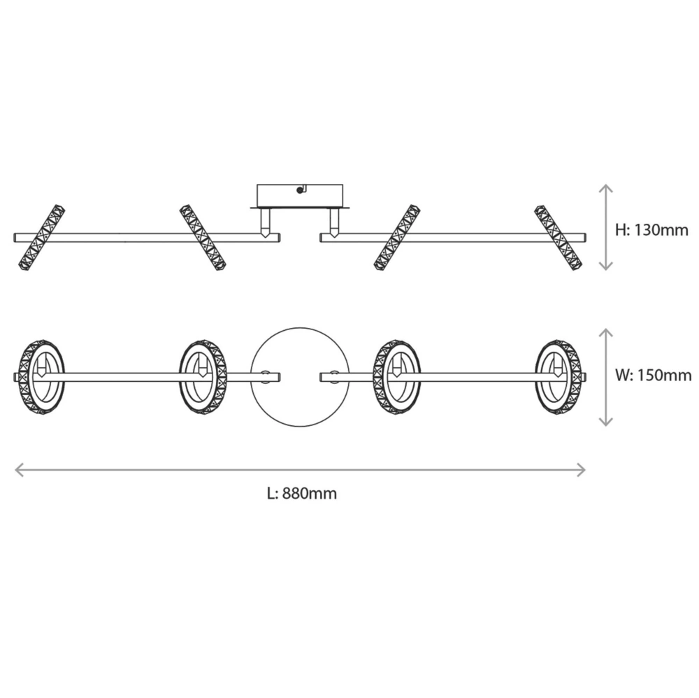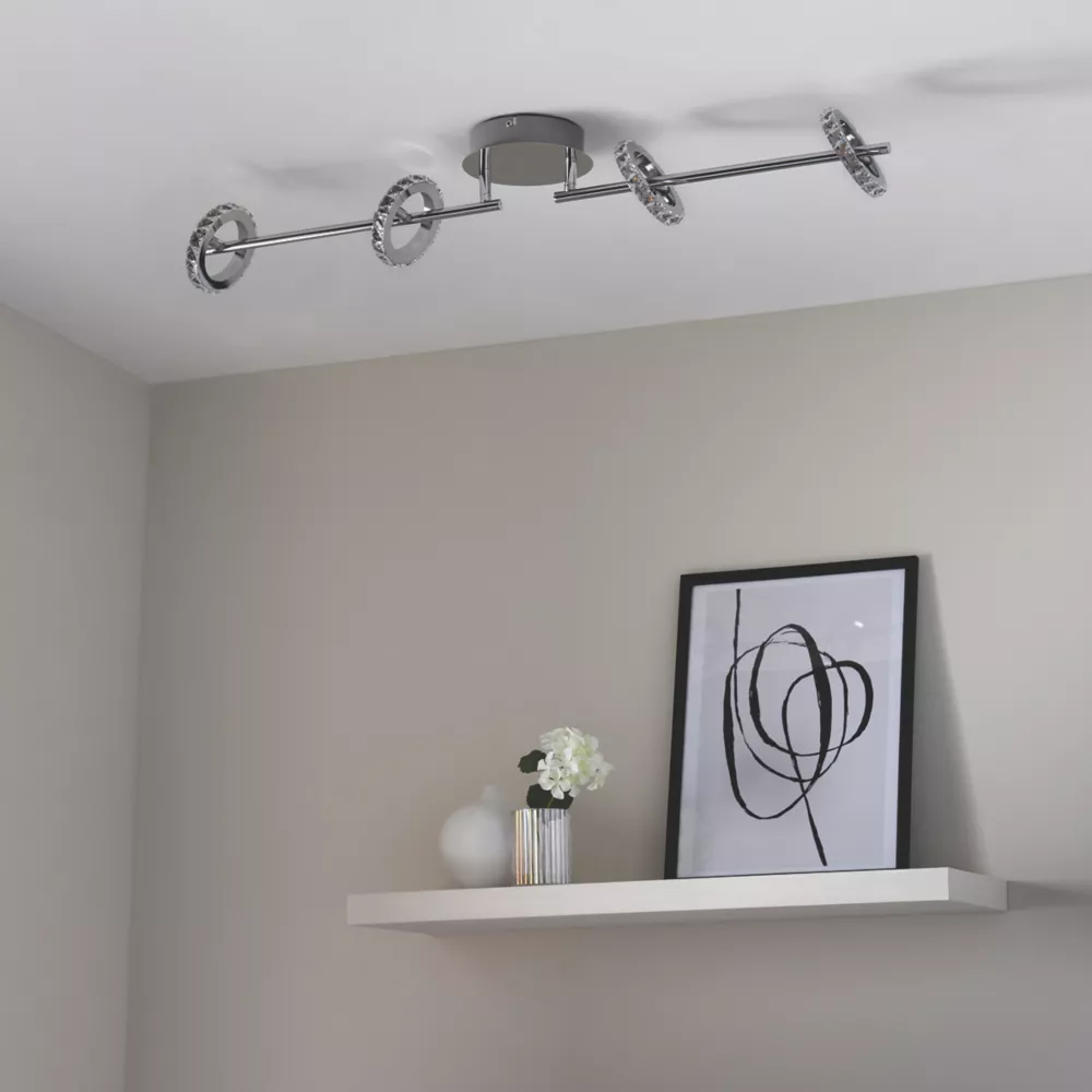 Contemporary 4-lamp spotlight with adjustable rings. Ideal for low ceilings.