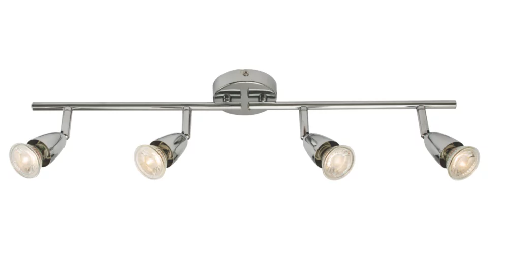Steel construction. Simple spotlight bar with chrome plate finish. Fully adjustable so light can be directed exactly where required. Suitable for accent lighting.