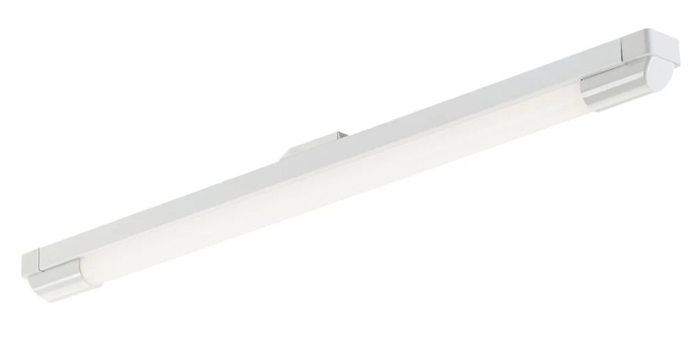 Metal body and plastic diffuser. Ideal replacement for traditional fluorescent T8 battens. Ease of installation through push-in design of the housing.