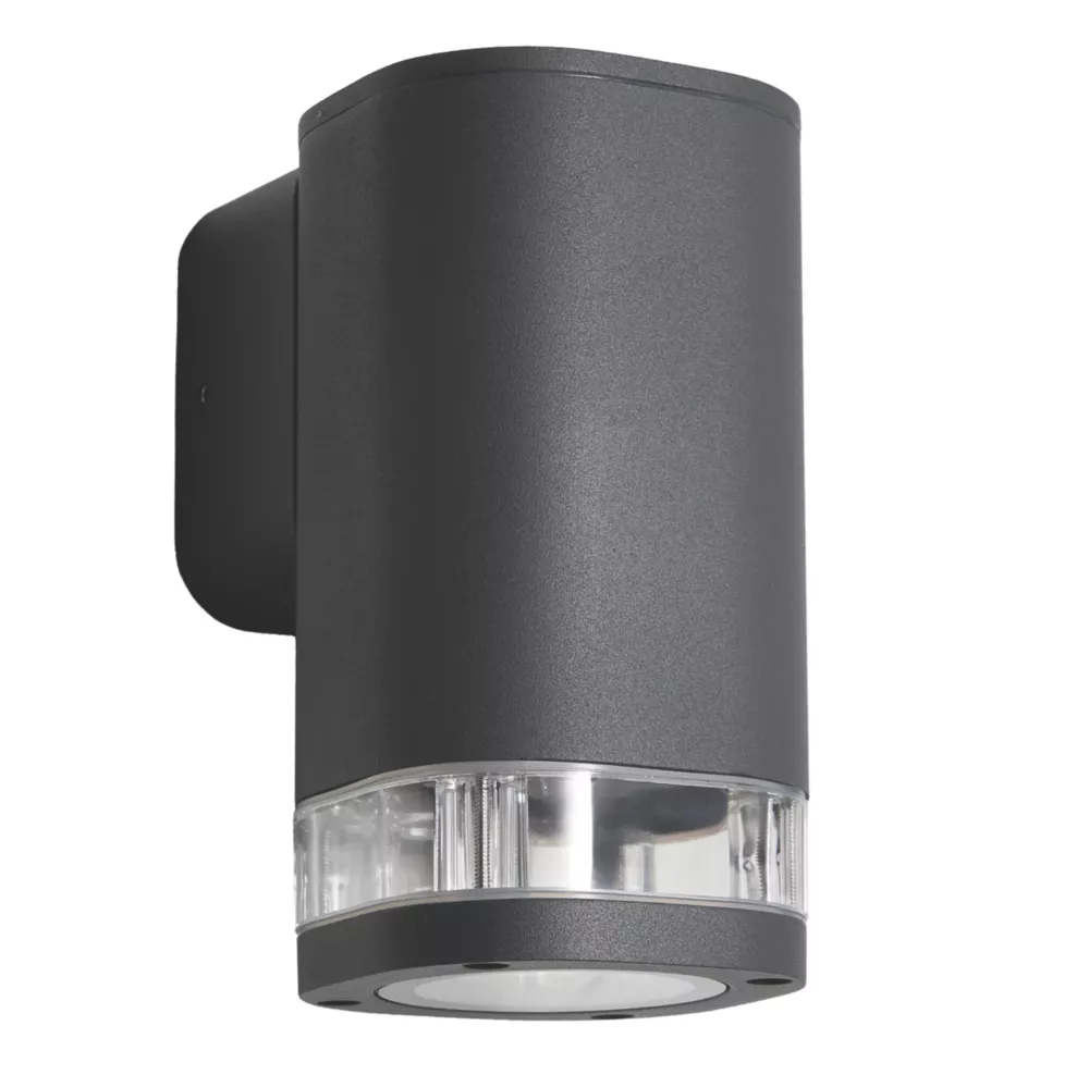 Die-cast aluminium construction for durability and strength. Features a clear diffuser shade to emit a soft directional light. Wipe clean with a soft, dry cloth. Ideal for LED bulbs up to 6W.